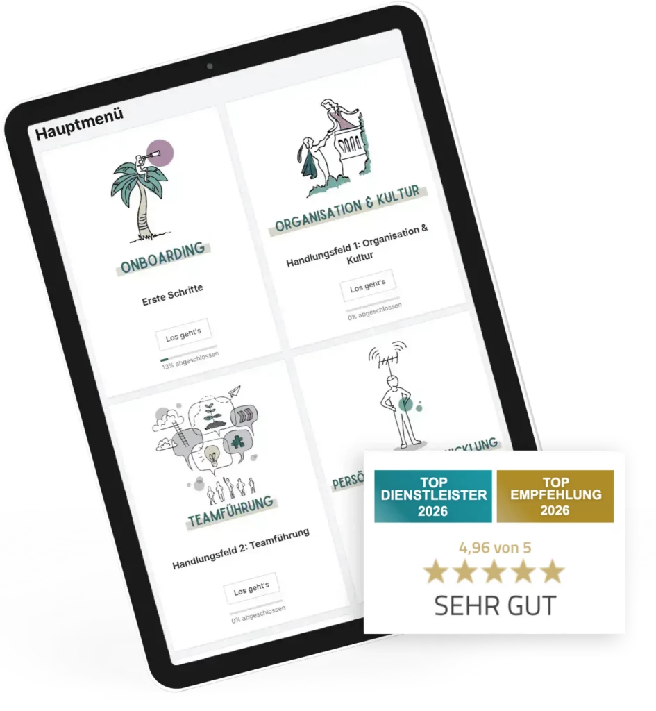 Du erhältst Expertenwissen aus den drei erfolgsrelevanten Themenfeldern Strukturen & Prozesse, Mitarbeiterführung und Selbstorganisation.